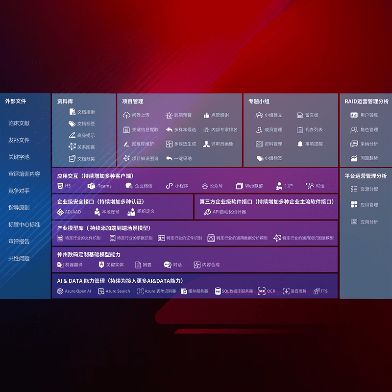 医疗器械产品上市前,,,,要熟悉严格与繁复评审标准,,,,整理分析监管机构指导文件中的海量信息。。。。企业急需一个智能化解决方案,,,提升知识管理效率,,提高评审通过率,,,,以提升其市场竞争力。。